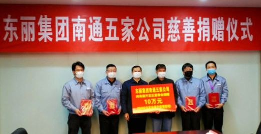 (Nantong)社(TFN社)、東麗繊維研究所(中国)社(TFRC社)の5社共同で、新型コロナウイルス感染拡大防止のために役立ててもらいたいと地元の南通慈善基金会へ10万元の寄付を行いました。