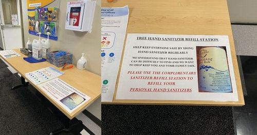 Tacoma工場に設置された、手指消毒ステーションの一つ