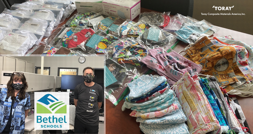 Decatur工場では、3Dプリント技術を使用したマスクフック(マスクの紐につけて、耳が痛くなるのを防ぐもの)の生産を開始し、これまでに生産した数百個は従業員の他、家族や友人に配布しました。また、Tacoma本社・工場では、地元の学区と提携しマスクの寄付活動に参加し、従業員による手作りの布マスクを含め496枚のマスクを地元のボランティア、教師、行政機関に寄付しました。(総務部 Emily Tolle 記)