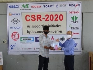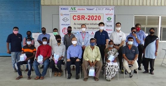 スリシティ工業団地の近隣村に新型コロナウイルス感染防止対策備品を寄付