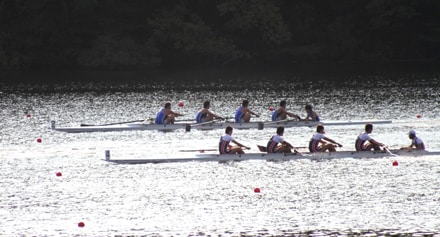 舵手付フォア予選のレースの模様(手前が東レ滋賀)