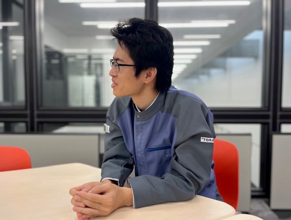 大学院時代は、物性・素材に興味があり半導体物性について研究していたことから、将来は素材開発に関わるような仕事に就きたいと思っていました。自分の専門分野である電気の知識を活かすべく、素材メーカーの電気エンジニアを就活の軸とした結果、東レに入社しました。