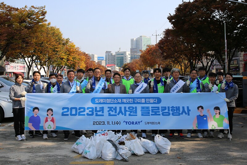 歩きながらごみを拾う「プロキング」を実施。1,600人の社員が参加(Toray Advanced Materials Korea Inc.)