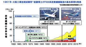 このように、最初から本丸は航空機でしたが、商業生産を始めた当時はその市場はまだ存在せず、釣り竿やゴルフクラブなど、いくつかの用途でキャッシュフローを生みながら技術を磨いてきました。まさに壮大な先行投資による大型新事業の創出です。